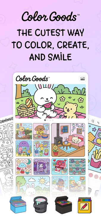 Dengan palet warna pastel yang menenangkan, Color Goods memberikan ruang yang nyaman untuk bersantai dan menemukan inspirasi. Alat mewarnai yang mudah digunakan membuat pengalaman ini memuaskan, baik untuk anak-anak maupun orang dewasa. Aplikasi ini adalah cara yang sempurna untuk meluangkan waktu dan menikmati momen kreativitas tanpa batas.